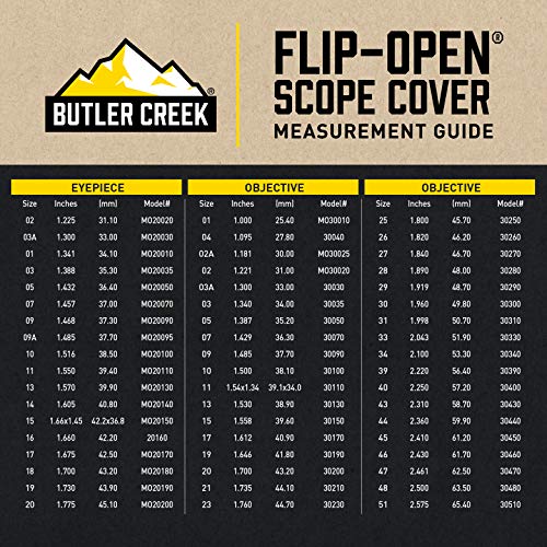 2 people found this helpful. This chart can be printed off and your scope measured up to it, or they list a very large variety of popular scopes. Butler creek produces the world’s largest assortment of scope covers.